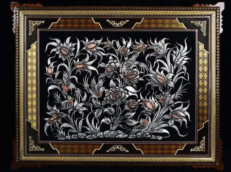 کاربردهای تابلو قلمزنی روی مس با قاب خاتم